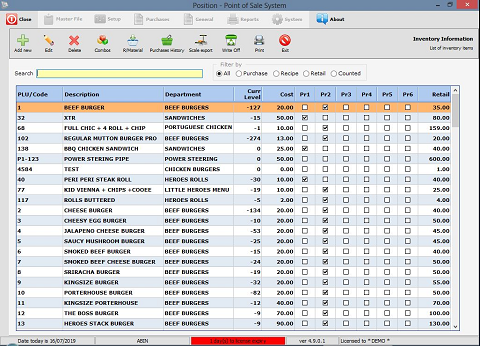 - PLU code, Bar-code, Lookup, touchscreen item ring-up